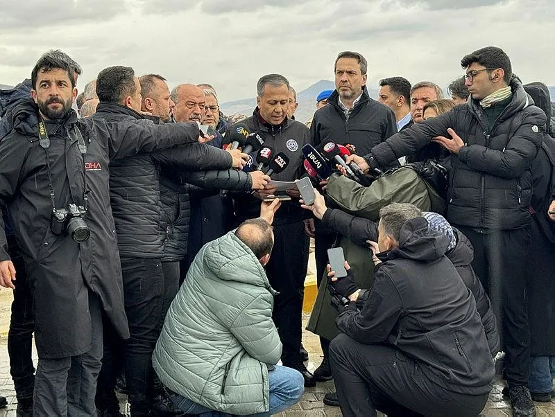 Enerji ve Tabii Kaynaklar Bakanı Alparslan Bayraktar ve yetkililer eşliğinde gazetecilere açıklama yapan Yerlikaya, arama kurtarma çalışmalarının gece gündüz aralıksız devam ettiğini ifade etti.