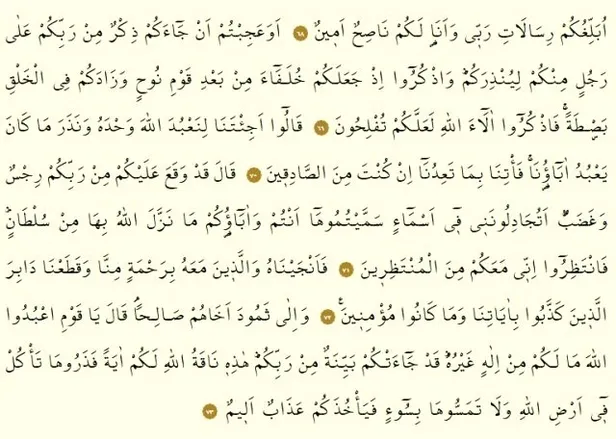 69.E ve acibtüm en caeküm zikrum mir rabbiküm ala racülim minküm li yünziraküm vezküru iz cealeküm hulefae mim ba'di kavmi nuhıv ve zadeküm fil halkı bestah fezküru alaellahi lealleküm tüflihun