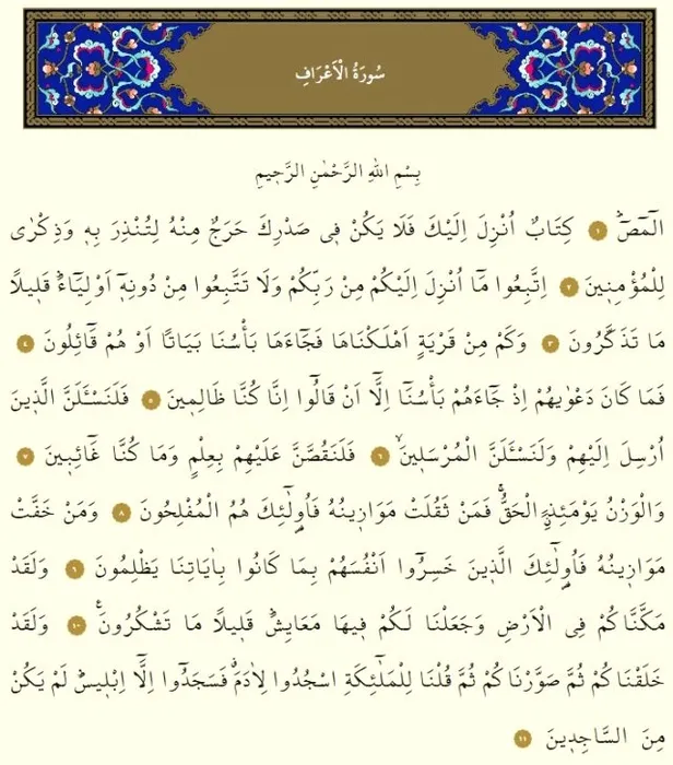 Araf Suresi Oku - A'râf Suresi Anlamı, Tefsiri, Türkçe ve Arapça Okunuşu