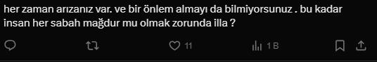 Seferlerin yapılmadığını belirten bir vatandaş, "Yapılmamaktadır deyin şuna! Yapılmış metro hattını bile yönetmekten acizsiniz! Bu kadar insanın ekonomik olarak kaybı ne olacak? Külliyen zararsınız!" ifadelerini kullandı.