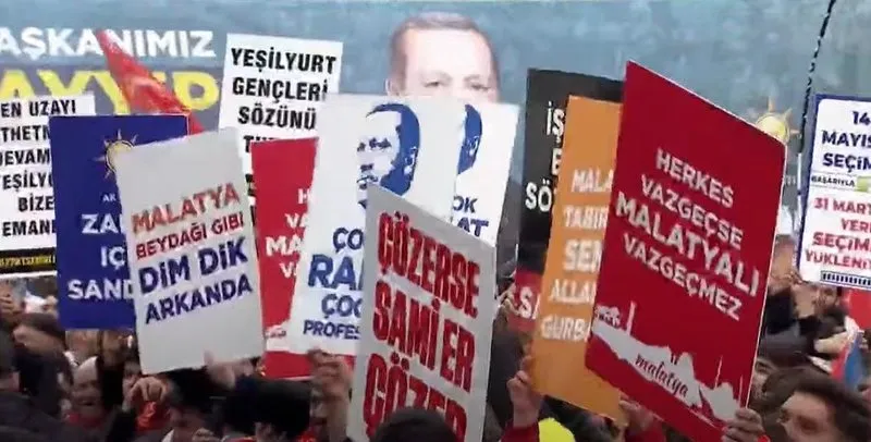 "Bu türküde olduğu gibi Malatyalı kardeşlerim, kimin kendisine gönül verdiğini, kimin şahsi hesaplar peşinde koştuğunu çok iyi biliyor. Bizim bildiğimiz Malatya'nın insanı köşeli olur, karakterli olur, mert olur, sözünün eri olur. Pusulasını şaşıranı, Kandil'le DEM'lenmeyi marifet sayanı, teröristlerle sarmaş dolaş olanı Malatya affeder mi? Eser ve hizmet siyasetiyle demokrasi ve kalkınma atılımlarıyla şehrini geliştireni Malatya unutur mu? Hak ve özgürlük alanını genişleterek kendini öz yurdunda garip bırakmak isteyenlere dersini vereni Malatya terk eder mi? Dünyada başı dik şekilde dolaşmasını sağlayanı, bayrağının hep dalgalanması ve ezanlarının hiç susmaması için çalışanı Malatya ihmal eder mi? Depremle sarsılan, nice sevdiklerini toprağa veren, evi, iş yeri hasar gören kardeşlerine yeniden hayata sarılma umudu vereni Malatya bırakır mı?"
