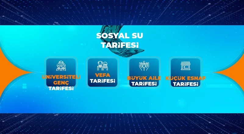 Üniversiteli Genç tarifesi, 65+ ve emekli tarifesi, Büyük Aile tarifesi ve Küçük Esnaf tarifesi ile adil su yönetimi hayata geçirilecek.