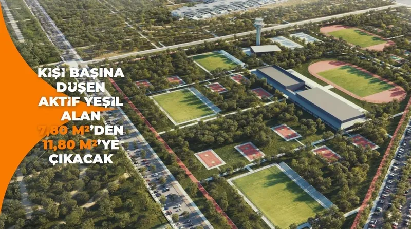 Kişi başına düşen aktif yeşil alan 7,80 metrekareden 11,80 metrekareye çıkarılacak.