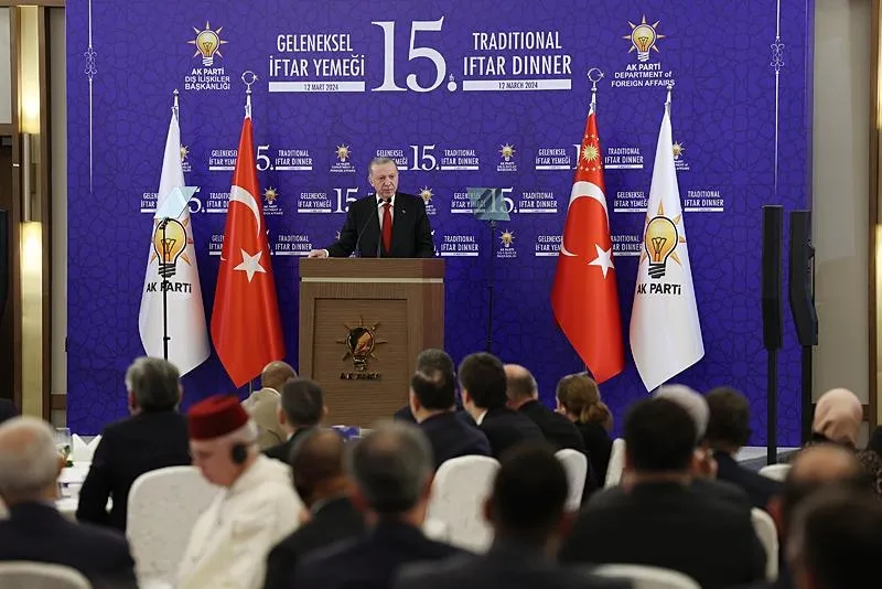 Erdoğan, AK Parti Konferans Salonu'nda bu yıl 15'incisi düzenlenen Geleneksel Büyükelçiler İftarı'ndaki konuşmasında, Cumhuriyetin 100. yılını geride bırakmanın gururunu yaşayan Türkiye'nin, Türkiye Yüzyılı'nın inşası için hedeflerine emin adımlarla ilerlediğini belirtti.