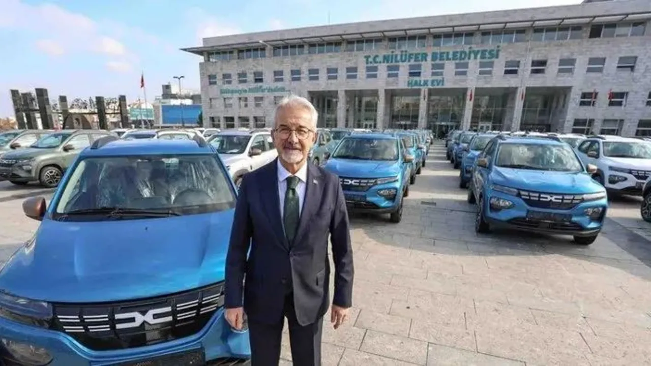 Belediye'ye bağlı NİLBEL şirketi üzerinde 65 adet Sıfır model elektrikli araç alımı gerçekleştiren Erdem, teslim edilen araçları Belediye binası önünde sergileyerek adeta şov yapmıştı.