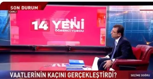 CHP'li İBB Başkanı Ekrem İmamoğlu, canlı yayında yapmadığı vaatleri sorulunca gerginlik yaşandı. Sunucu Mehmet Akif Ersoy'un "Soruları Murat Ongun verdi" itirafını idrak edemeyen İmamoğlu, 'Murat Bey' ifadesini Murat Kurum sanarak algı yapmaya başladı.