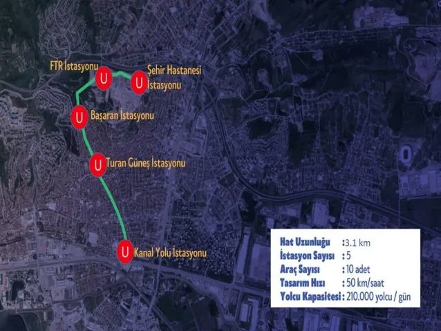Proje kapsamında 12,4 kilometre ray imalatı yapıldığını, 5 adet istasyonun da betonarme, mimari imalatlarını tamamladıklarını açıklayan Uralığlu, "Toplamda 40 bin 819 m3 beton, 5 bin 975 ton demir imalatı gerçekleştirdik. Ayrıca 8 bin 500 m3 Taş Duvar, 3 bin 980 m2 Taş Pere ve 2 bin 400 metre Fore Kazık imalatı da tamamladık. Projemizin Elektromekanik imalatları ve sinyal imalatlarını da yaptık. Göründüğünden çok daha büyük bir projeyi kısa sürede hizmete verdik. Çünkü 2003 yılından itibaren Cumhurbaşkanımız Sayın Recep Tayyip Erdoğan'ın liderliğinde demiryolları sektöründe dev yatırımlarla büyük mesafeler kat ettiğimiz gibi kent içi raylı ulaşım sistemlerinde başta büyük şehirlerimiz olmak üzere ülkemiz genelinde büyük ilerlemeler kat ettik. Hiçbir projeyi küçük görmedik. Hiçbir projede gecikmeye izin vermedik. Bakanlık olarak Türkiye genelinde 416 kilometre kent içi raylı sistem projesine daha devam ediyoruz. İstanbul, Kocaeli ve Bursa'da da toplam 60,7 kilometre raylı sistem hattının yapım çalışmalarını sürdürüyoruz" diye konuştu.