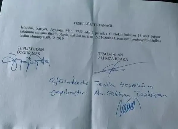 Kaporanın yatırılması için 9 Aralık 2019'da Braka'nın avukatı Gökhan Taşkapan'ın ofisinde buluşuldu.