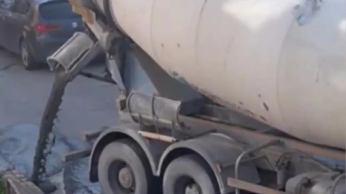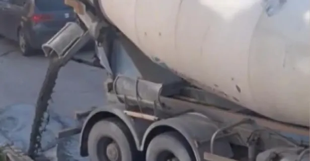 İddiaya göre, sokaktan çıkan 34 EN 2311 plakalı beton mikserinden yola beton dökülmeye başladı.