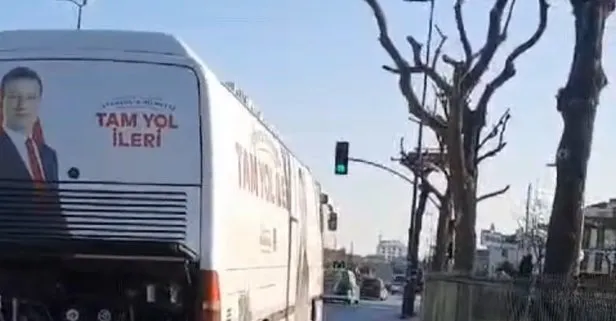 CHP’li Ekrem İmamoğlu’nun ‘Tam yol ileri’ yazan seçim otobüsü yolda kaldı!