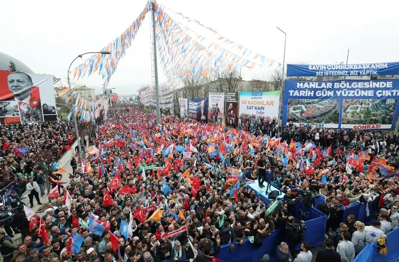"Belediyelerde yaptıklarını görüyorsunuz. 5 yılda iflas ettirmedikleri yer kalmadı. Sorunsuz saat gibi tıkır tıkır işleyen hizmetleri bile devam ettiremediler. Sadece yalanlarıyla sizleri kandırmanın peşindeler. Biz tüm samimiyetimizle, tüm içtenliğimizle, tüm hak ve hakkaniyet duygumuzla size gerçeği söylüyor, çözüm yolumuzu paylaşıyoruz. 21 yılda nasıl 3 kat Türkiye'yi büyüttüysek, önümüzdeki dönemde 2 kat daha büyütüp inşallah sözlerimizi fazlasıyla tutacağız. Yeter ki birliğimize, beraberliğimize sahip çıkarak, ülkemizin bütünlüğünde, devletimizin bekasında gözü olanları sevindirmeyelim. Gerisi sadece gayret, vakit ve planlama meselesidir."