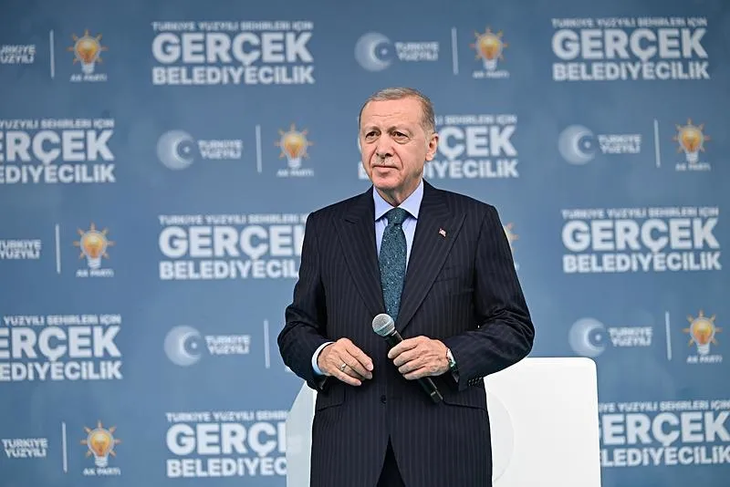 Erdoğan, "Valizler, çantalar dolusu dolarlar, avrolar... Bunları saymaya bile yetişemiyorlar. Sayma görüntülerini izah edemiyor. Bir tane CHP'li yetkili çıkıp da paradan yapılan kulelerin kime ait olduğunun cevabını veremiyor. Daha darbe güzellemelerini, millete yaptıkları hakaretleri saymıyorum. İşte bu seçimlerde sadece şehirlerinizi yönetecek başkanları seçmekle kalmayacaksınız, aynı zamanda ülkemizin geleceğinde hangi siyaset tarzının önünün açılacağını da belirleyeceksiniz. Sizlerden 31 Mart'a bu gözle de bakmanızı istiyorum." ifadelerini kullandı.