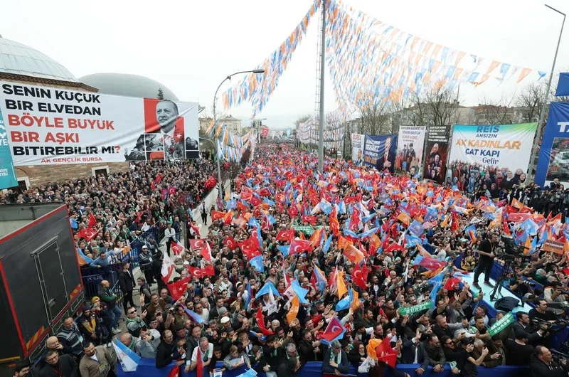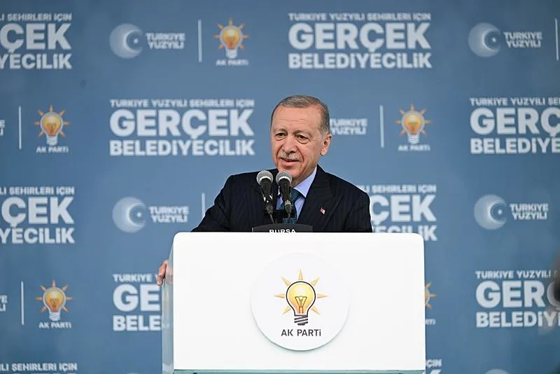 Bu kentin başta Togg fabrikası olmak üzere ülkenin prestij eserlerine öncülük ettiğini ve ev sahipliği yaptığını belirten Erdoğan, "Allah vergisi büyüleyici güzellikleriyle, medeniyetlerin mirası eşsiz birikimiyle en önemlisi de vakur insanıyla Bursa'ya da böylesi yakışır. İnşallah, Bursa 31 Mart'taki tercihiyle bu duruşunu büyükşehirde ve ilçelerde belediye yönetimlerine de yansıtacaktır. Ben buna inanıyorum, Bursa'ya güveniyorum. Biz de belediye başkanlarımızla el ele verip Bursa'nın önünde yeni bir dönem açmayı planlıyoruz." diye konuştu.
