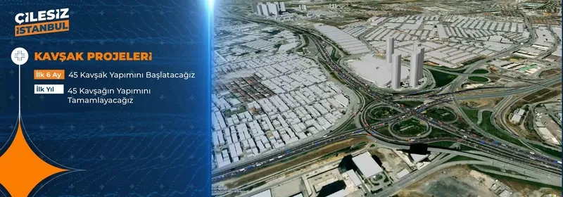 İlk 6 ayda; 45 kavşak yapımı başlayacak. Bu kavşakların tümü ilk yıl tamamlanacak.