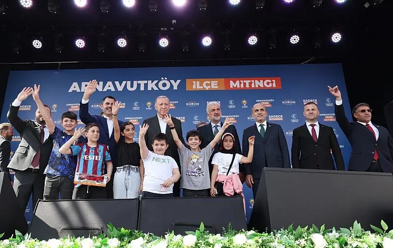 Erdoğan, partisinin Arnavutköy'deki 15 Temmuz Şehitler Meydanı'nda düzenlediği mitingde, Cumhur İttifakı'nın İstanbul Büyükşehir Belediye (İBB) Başkan adayı Murat Kurum, Arnavutköy Belediye Başkan adayı Mustafa Candaroğlu ve AK Parti İstanbul İl Başkanı Osman Nuri Kabaktepe ile halkı selamladı.