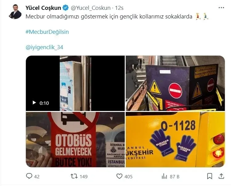 İYİ Parti Gençlik Kolları'ndan Ekrem İmamoğlu'nun ulaşım vasatlığına sert gönderme! Otobüs, metrobüs ve yürüyen merdivenlere durumu tiye alan çıkartma