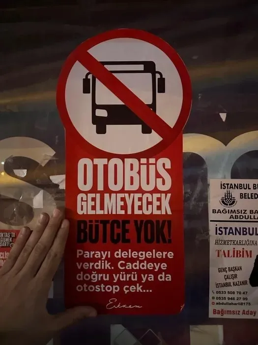 Ulaşımda yaşanan aksaklıklara dikkat çeken İYİ Parti gençlik kolları üyeleri otobüslere, otobüs duraklarına ve metrolara çıkartmalar yapıştırdı.