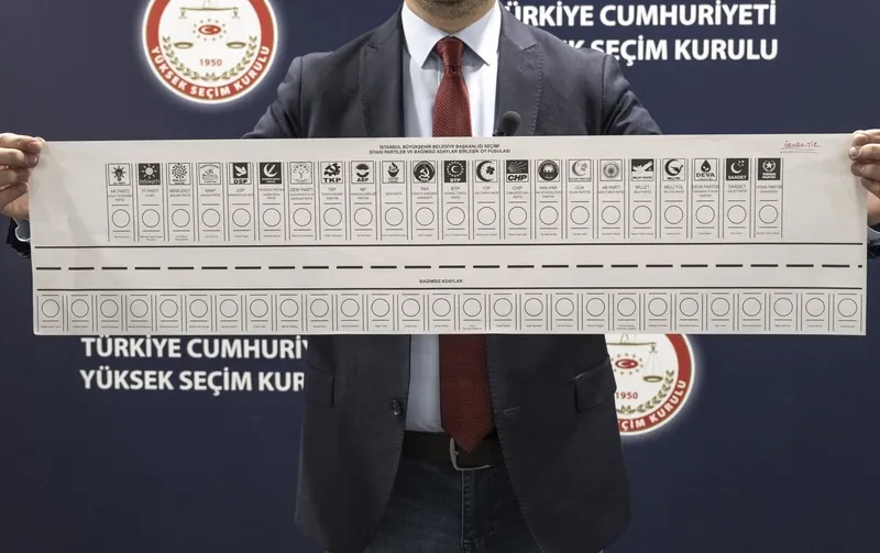 AK Parti 1, İYİ Parti 2, Sol Parti 3, Büyük Birlik Partisi 4, Memleket Partisi 5, Anavatan Partisi 6, Demokratik Sol Parti 7, Yeniden Refah Partisi 8, Halkların Eşitlik ve Demokrasi Partisi (DEM Parti) 9, Türkiye Komünist Partisi 10, Anadolu Birliği Partisi 11, Zafer Partisi 12, Halkın Kurtuluş Partisi 13, Türkiye Komünist Hareketi 14, Bağımsız Türkiye Partisi 15, Gelecek Partisi 16, Yeni Türkiye Partisi 17, CHP 18, Emek Partisi 19, HÜDA PAR 20, Hak ve Özgürlükler Partisi 21, Ocak Partisi 22, Adalet Birlik Partisi 23, Demokrat Parti 24, Güç Birliği Partisi 25, Millet Partisi 26, Milli Yol Partisi 27, Adalet Partisi 28, Aydınlık Demokrasi Partisi 29, MHP 30, Türkiye İşçi Partisi 31, Demokrasi ve Atılım Partisi 32, Saadet Partisi 33, Vatan Partisi 34.