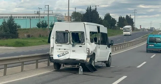Tekirdağ Ergene'de fabrika personelini taşıyan midibüsün, içinde askeri personel bulunan minibüse arkadan çarptığı kazada 5'i askeri personel, 16 kişi yaralandı.