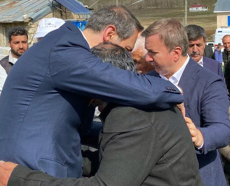 Bakan Bayraktar, gözyaşı döken Uğur Yıldız'ın annesi Sevda (55), babası Ali Ekber (58) ve eşi Gamze Yıldız'a sarılarak teselli etti.