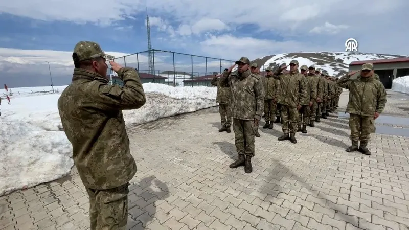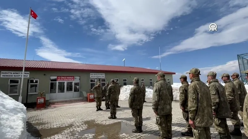 Yerli cihaz ve silahlarla sınır güvenliğini 7 gün 24 saat esasına göre sağlayan "hudut kartalları", Türkiye-İran sınırında zorlu iklim koşullarına rağmen görevlerini başarıyla sürdürüyor. Bayram sabahında içtima alanında bir araya gelen askerler, ailelerinden uzakta komutanlarıyla bayramlaştı.
