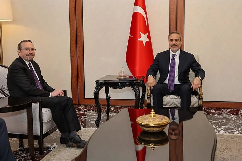 Dışişleri Bakanı Hakan Fidan, ABD Dışişleri Bakanlığı İdari İşler Müsteşarı ve Siyasi İşler Müsteşar Vekili John Bass ile Dışişleri Bakanlığı resmi konutunda görüştü. (15 Nisan 2024)