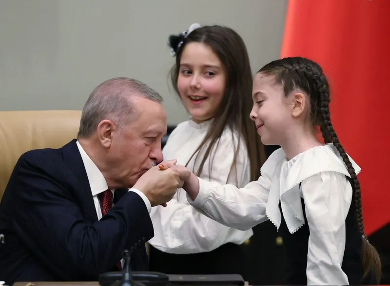 Erdoğan, Cumhurbaşkanlığı Külliyesi'nde, 23 Nisan Ulusal Egemenlik ve Çocuk Bayramı dolayısıyla Türk dünyası çocukları ve TRT Çocuk Şenliği konuk çocuklarını misafir etti.