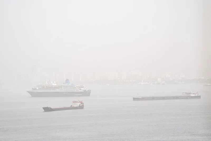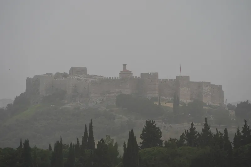 Toz taşınımından etkilenen kentler arasındaki İzmir'de de görüş mesafesi düştü. Bazı vatandaşların maske taktığı görüldü.