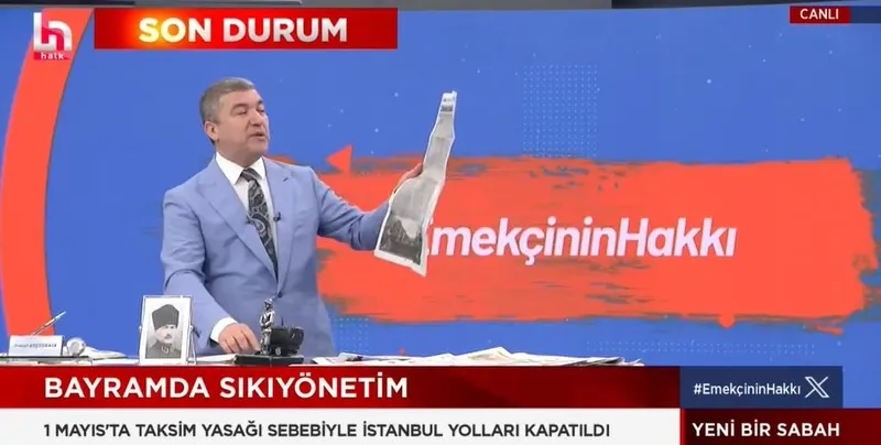 Ekrem İmamoğlu'na yakınlığıyla bilinen Halk TV'de İsmail Küçükkaya'nın sunduğu programda "İstanbul'da 1 Mayıs sıkıyönetimi", "Bayramda sıkıyönetim", "Tarihi 1 Mayıs ablukası" başlıkları kullanıldı.