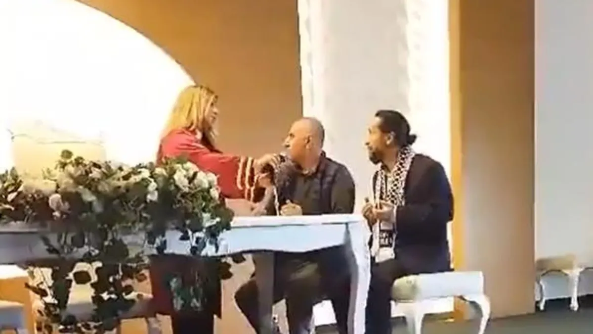 Hocanın duaya başlayacağı sırada arkadan gelen nikah memuru, "Burada resmi nikah kıyılıyor, dua edemezsiniz" diyerek mikrofonu elinden alarak sahnenin arka tarafına geçti.