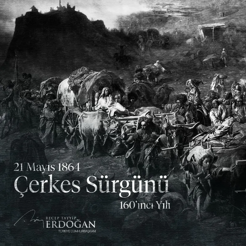 Ana vatanları Kafkasya'dan insanlık dışı yöntemlerle sürgün edilmelerinin 160'ıncı yıl dönümünde, Çerkes kardeşlerimizin yaşadığı büyük acıları paylaşıyor, hayatını kaybedenleri rahmetle yâd ediyorum.