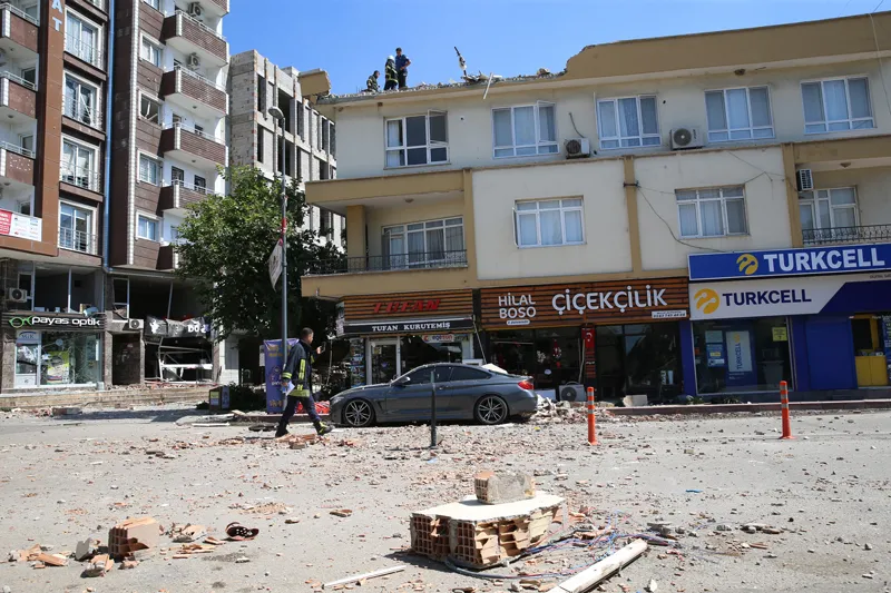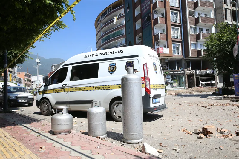 Hatay'ın Payas ilçesinde patlama meydana gelen 2 katlı bina ve çevresinde hasar oluştu.