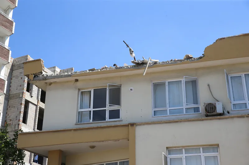 Ekipler, 2 katlı binanın çatısında meydana geldiği öne sürülen patlamanın nedenini araştırıyor.