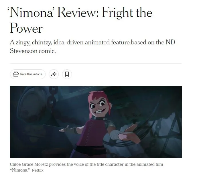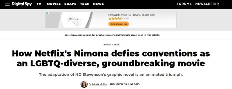 Bir diğer sapkınlık savunucusu İngiltere merkezli Digital SPY yazarı Mireia Mullor ise Nimona'yı överken 'çığır açan bir film' olarak tanımlıyor. Aslında gelenekleri ve aile yapısını bozan bir ahlaksızlık olduğu halde Nimona'nın geleneklere meydan okuduğunu söylüyor.