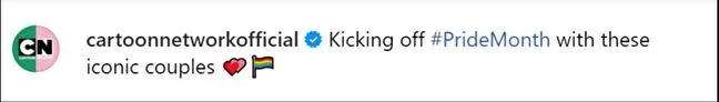 Sosyal medya platformu Instagram hesabında iki erkeğin öpüştüğü görsel paylaşan çocuk kanalı Cartoon Network resmi hesabında LGBT paçavrasına yer vererek "Bu ikonik çiftlerle #OnurAyı'na başlıyoruz" paylaşımı yaptı.