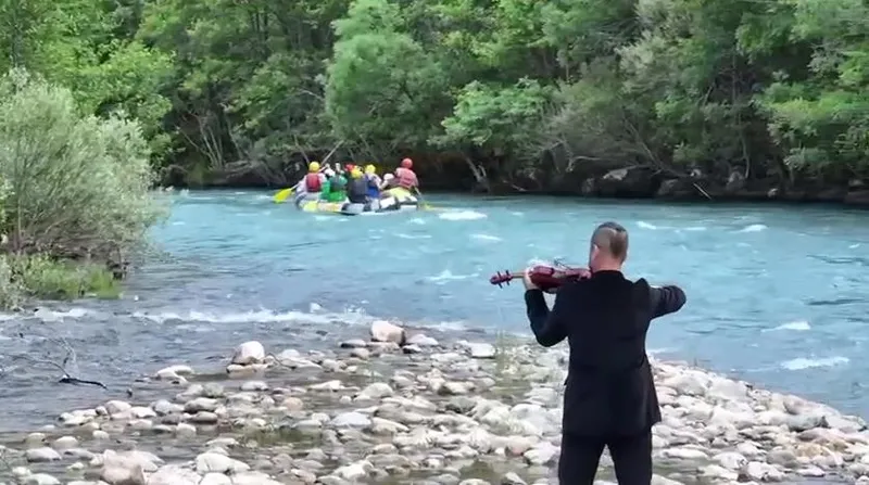 Silah değil keman sesi! Doğa tutkunu akademisyen Uğur Çit'ten Munzur Çayı ortasında keman resitali