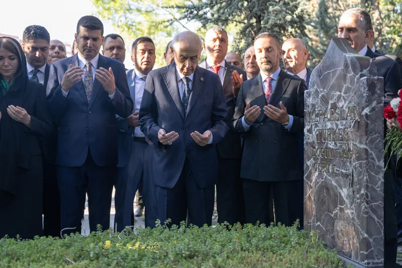 MHP Genel Başkanı Devlet Bahçeli, bayram namazının ardından MHP'nin kurucu Genel Başkanı Alparslan Türkeş'in Beştepe'deki anıt mezarını ziyaret etti.