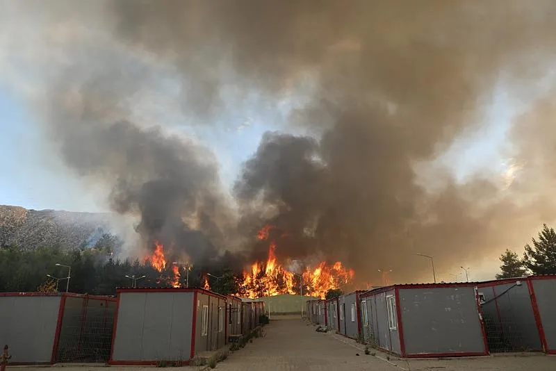 Bir süre sonra rüzgarın etkisiyle yangın yakında bulunan Geçici Barınma Merkezi'ne sıçradı.