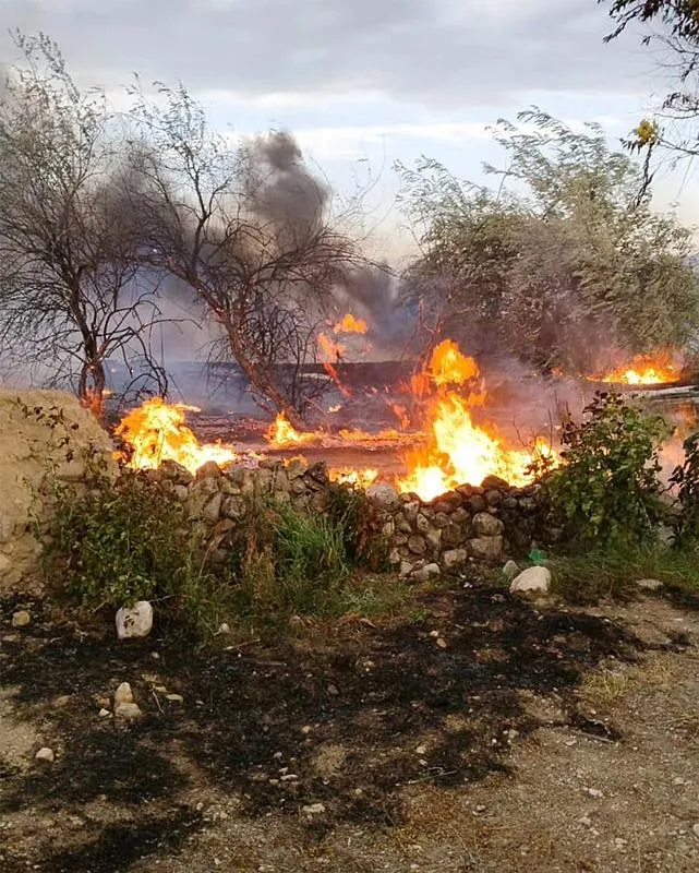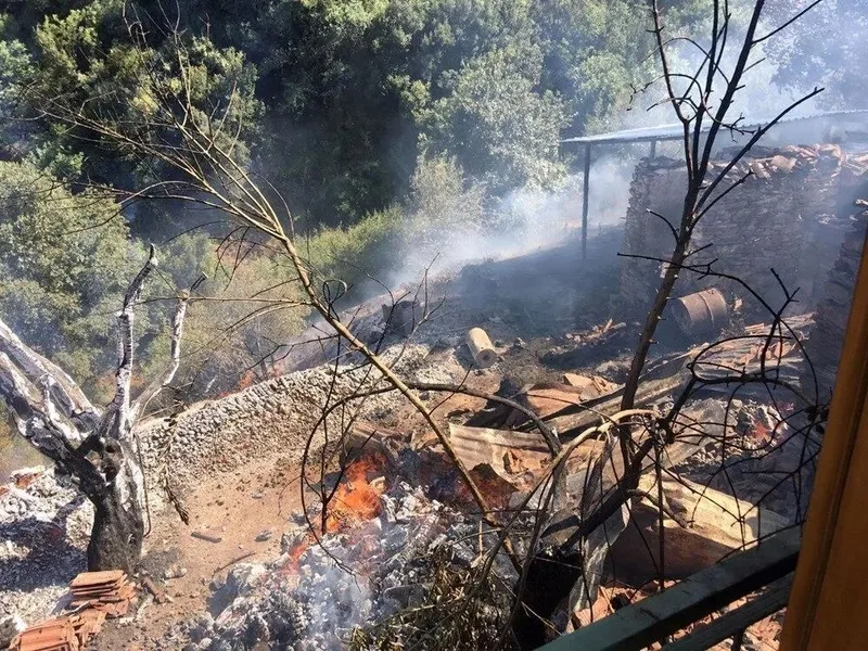 Yangında 5 hektar tarım arazisi, 10 dönüm ormanlık alan, barınma merkezindeki 2 konteyner ve bir yakıt deposu zarar gördü.