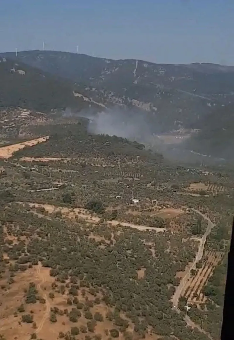 İhbar üzerine bölgeye İzmir Orman Bölge Müdürlüğüne bağlı 4 uçak, 3 helikopter, 10 arazöz, 2 su ikmal ve 2 dozer sevk edildi.