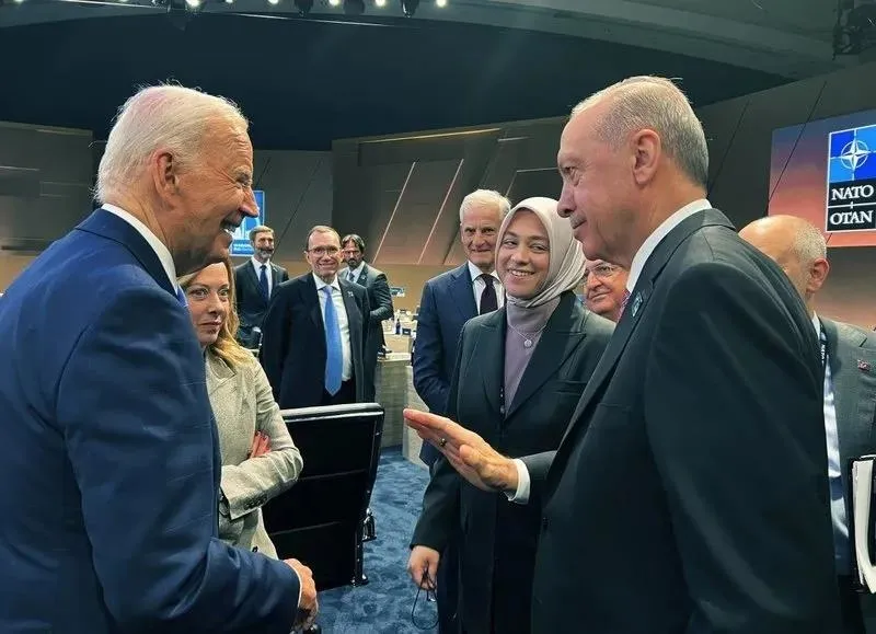 Başkan Recep Tayyip Erdoğan, Washington'da düzenlenen NATO Liderler Zirvesi'nde ABD Başkanı Joe Biden ile ayaküstü sohbet etti.