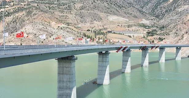 "Bundan 22 yıl önce Türkiye'nin toplam tünel uzunluğu 50 kilometre iken biz sadece burada 56,7 kilometre uzunluğunda 39 tünel inşa ettik. Yani 80 yılda yapılan 50 kilometrelik tünel uzunluğundan fazlasını tek bir projede tamamladık. 69,2 kilometre uzunluğundaki Yusufeli relokasyon yollarını, Merkez Viyadüğü dışında 22 Kasım 2022'de Yusufeli Barajı ile hizmete açmıştık. Bu projemiz ile Artvin'i Erzurum'a, Kafkasları ve Karadeniz sahil kesimini Doğu ve Güneydoğu Anadolu'ya bağlayan kuzey-güney aksının standardını önemli ölçüde yükselttik. Yüksek dağların ve derin vadilerin bulunduğu bölgede, doğaya meydan okuyan yüksek teknoloji ürünü viyadüklerle ulaşım standardını artırarak daha güvenli ve konforlu seyahat imkanı sunduk."