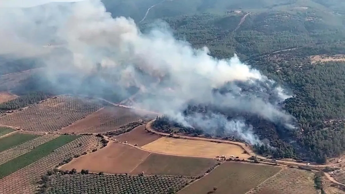 Manisa'nın Gölmarmara ilçesindeki ormanlık alanda yangın çıktı.