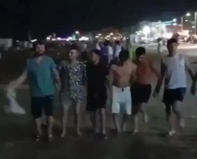 Mersin sahilinde bir grup, terör örgütü PKK marşı ile halay çekip PKK'nın elebaşı Abdullah Öcalan sloganları attı.
