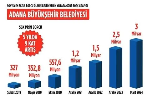 CHP'li Adana Büyükşehir Belediyesi'nin borcu da 5 yılda 9 kat artış gösterdi.