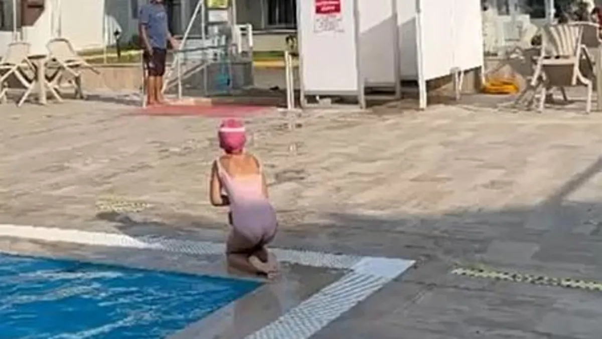 Görüntüde A.K., Meral Algün'ün haşema ile havuza girmesinin yasak olduğunu söylerken,"Buranın kuralı var"dedi. Daha sonra havuzun yanına gelen güvenlik görevlisi de "Buraya haşema ile girmek yasak" dedi. Kadının girmeye devam edeceğini söylemesi üzerine güvenlik görevlisi, "Havuzu kapatmak zorunda kalacağım"dedi. Havuz kadının girmemesi için kapatılırken, Meral Algün yaşananlara tepki gösterdi.