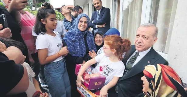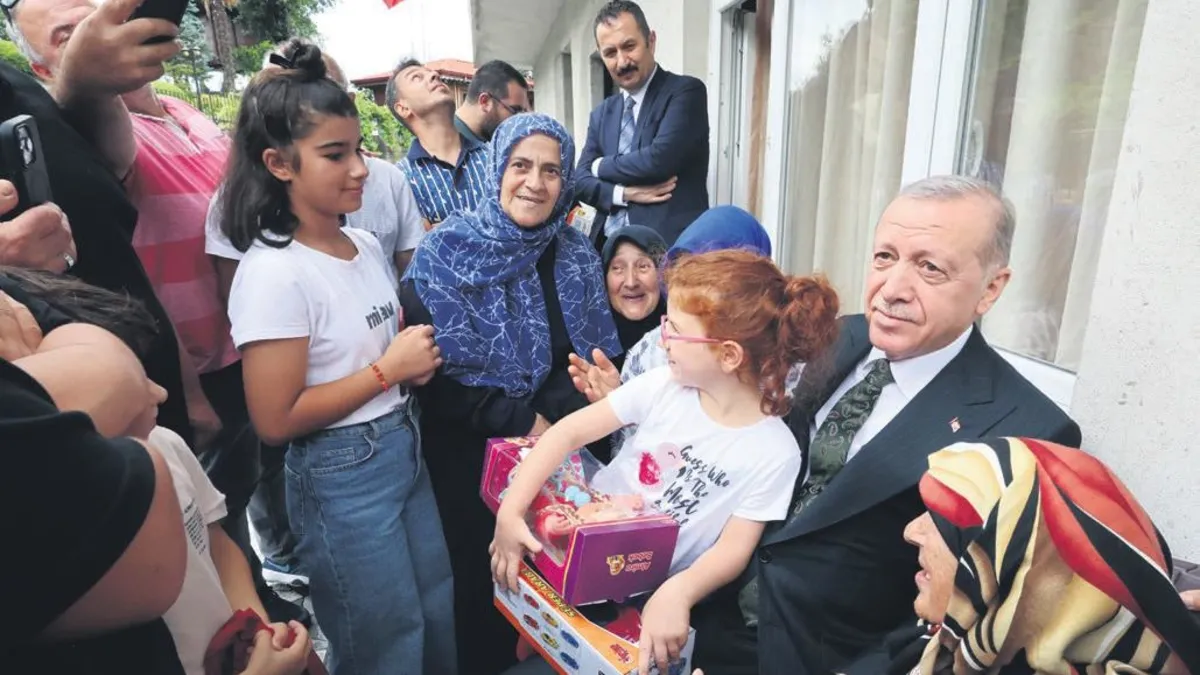 Toplu açılış törenine katılan Erdoğan, ailesinin evine de uğradı. Burada komşularıyla karşılaştı. Uzun uzun sohbete daldı. Yanına gelen çocuklara oyuncak dağıttı.