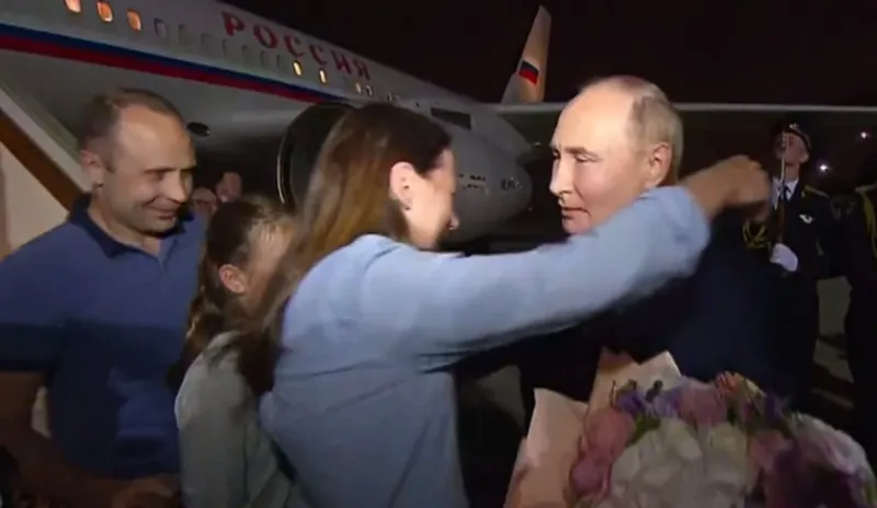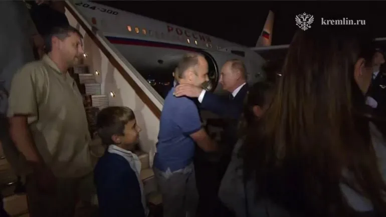 Rusya lideri Vladimir Putin, uçağın indiği Vnukovo Havaalanı'na gelerek, takas edilen Rusya vatandaşlarını uçağın merdiveninde karşıladı.