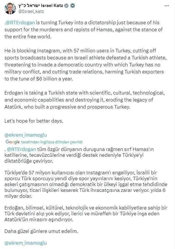 KATZ'IN ALÇAK PAYLAŞIMINA TÜRKİYE AYAĞA KALKTI