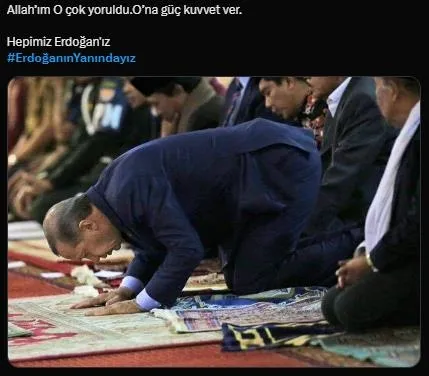 "Allah'ım O çok yoruldu.O'na güç kuvvet ver. Hepimiz Erdoğan'ız"